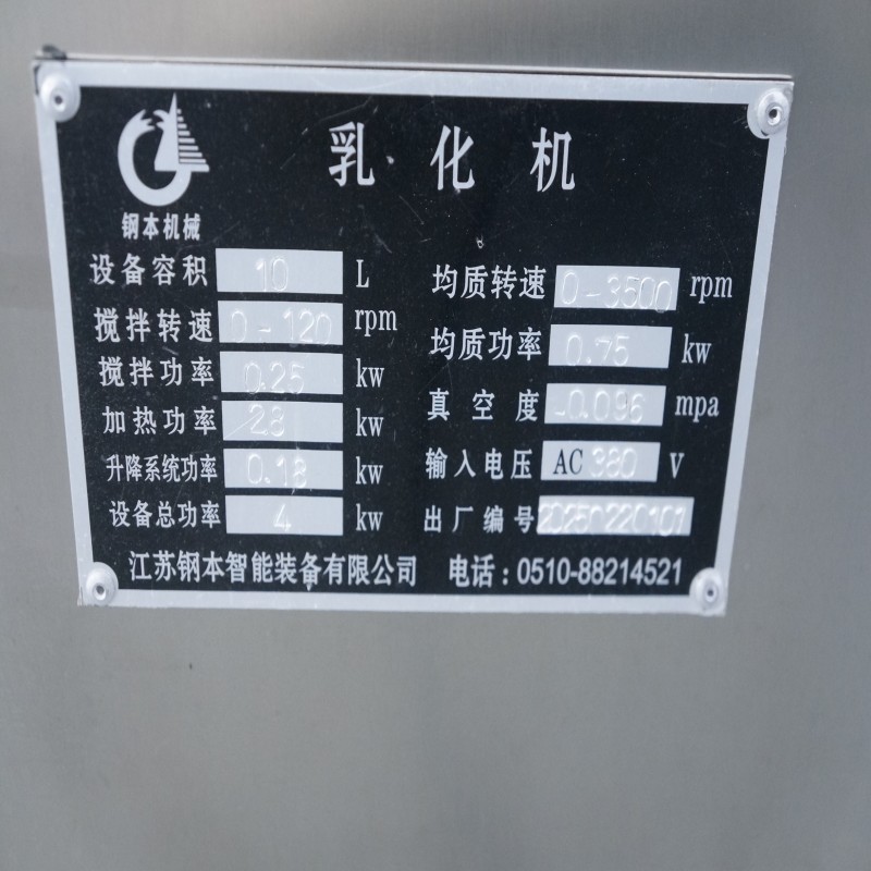 10Lвакуумныйэмульсирующий миксер Предназначен для эмульсии и смешивания различных веществ в вакуумной среде. Он имеет компактную, но практическую мощность, что делает его пригодным для обработки от средней до небольших партий материалов.