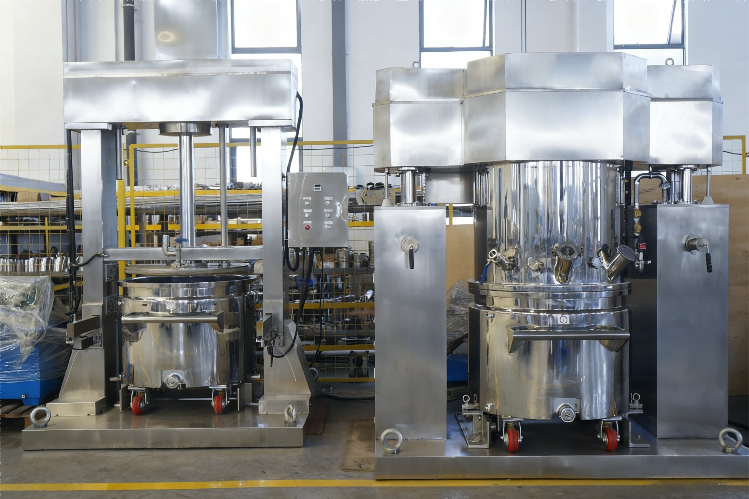 Одним словом, двойные планетарные миксеры имеют широкое применение, главным образом, для производства эмульсифицированных продуктов и высококонсистентных материалов. Они играют ключевую роль в повышении стабильности, точности и общей производительности продукции в различных отраслях.Фирма Gangben Mixer специализируется на исследованиях, разработке, производстве и продаже смесительных и заливочных машин. Основными продуктами компании являются вакуумные эмульгирующие смесители, высокоshear эмульгирующие смесители, вакуумные гомогенизирующие эмульгирующие устройства, наполнители и уплотняющие машины, а также линии жидкого наполнения. Оснащенные современными производственными цехами и средами, мы внедряем передовые технологии производства оборудования и строгие меры управления качеством и контроля процессов для обеспечения того, чтобы вся продукция была свободна от дефектов, прежде чем покинуть завод.